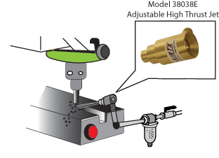 金屬磨切操作使用型號為38038可調小型空氣放大器來加強碎屑吹除和冷卻能力。這種可調小型空氣放大器可以吹除大量的加工堆積碎屑和冷卻周圍設備