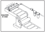 在標(biāo)簽傳送到印刷輥之前,使用85006型氣刀冷卻標(biāo)簽上附著的粘合劑,壓縮空氣使標(biāo)簽緊貼在傳送帶向輥?zhàn)右苿?dòng),這樣可減少設(shè)備和標(biāo)簽的損傷,且提高印刷質(zhì)量。